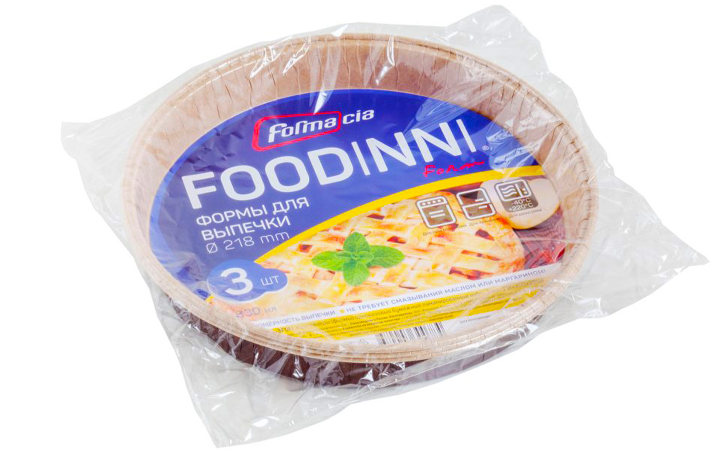 Одноразовая бумажная фoрма круглая, FOODINNI, V=0.84л., 3шт (С200-25LB-3FDN)