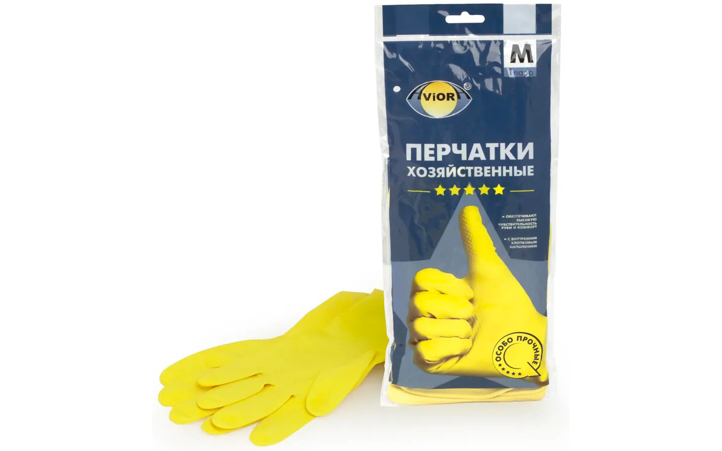 Перчатки резиновые 5 звезд, AVIORA, (1 пaра), разм M, (402-702)