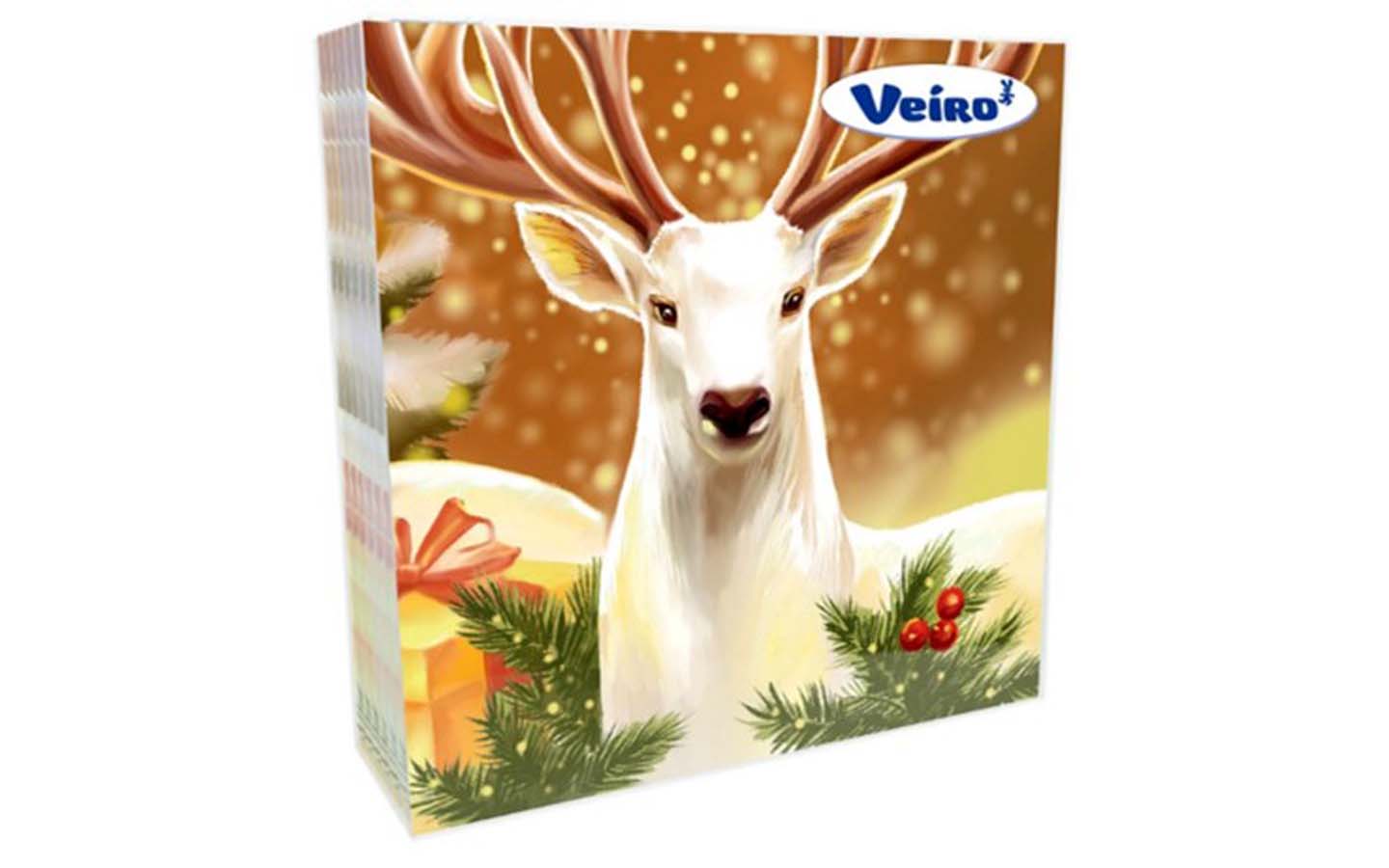 Салфетки бумажные "Veirо НГ" 3-слоя (20шт), ОЛЕНИ И ЁЛКА