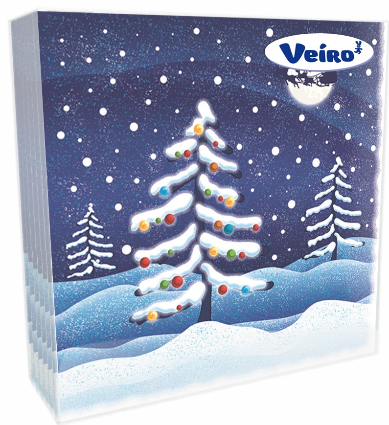 Салфетки бумажные "Veirо НГ" 3-слоя (20шт), ШАРЫ НА ЕЛКЕ